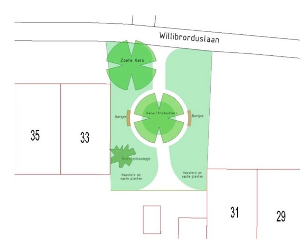 Op verzoek van bewoners verandert de speelplek aan de Willibrorduslaan 31-33 in een groene ontmoetingsplek. De toestellen verdwijnen, zodat er meer ruimte komt voor planten, bomen en ontmoeting. Spelen kan dichtbij, bij de speelplek aan de Willibrorduslaan 2–12.