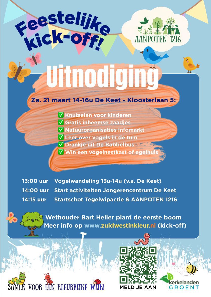 Bekijk de uitnodiging op de afbeelding om mee te doen om onze wijk groen te maken en te houden. Wil je ook: Kennismaken met de buurt, iets leren over de vogels en de natuur in de buurt en een gezellige middag hebben? Kom naar de Keet op 21 maart. Zie de uitnodiging.